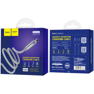 Описание Кабель USB Hoco U40A Magnetic Adsorption Lightning (1.2m) (Серый / Grey)