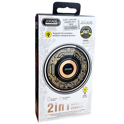Швидка бездротова зярядка Jokade JK008 2в1 (для телефона та гарнітури) Розумна швидка зарядка потужністю 15W, безпечна, не шкодить телефону Один пристрій може заряджати мобільні телефони та навушники Миттєва ...